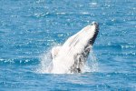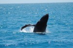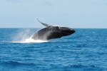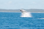 Ons geduld wordt – dubbel en dik- beloond want daar zijn ze, een moeder humpback whale met kalfje! Onder een – ondertussen doorgebroken – stralende zon voelen onze reusachtige vrienden zich blijkbaar goed in hun sas, want ze trakteren ons op een ongezien spektakel. Een lobtail hier, een rol daar en de ene breach gevolgd door de andere! Alsof dit nog niet voldoende was, komen moeder en kalf rustig rond onze boot dobberen…. Toch een bijzondere ervaring om deze kolossen op enkele meters van je boot(je) te zien en voelen!