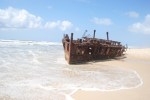 Op dag twee staat de Seventy Five Mile Beach Road op ons programma. Aangezien er op Fraser Island geen wegen zijn, geldt de kuststrook als highway. Je moet de weg wel delen met de vliegtuigen die op het strand landen en opstijgen. Na The Pinnacles en Maheno Shipwrack, een in 1935 gestrand schip, rijden we naar en door Eli Creek. Een pittoresk ‘beekje’ met naar verluidt het helderste water op het continent….het lijkt ons alvast niet gelogen.