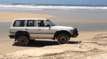 De ferry meert aan, de klep valt met een doffe plof op het mulle zand en HERE WE GO! Eerst rijden we met een zekere voorzichtigheid en vorm van gewenning (zeker doordat we in het eerste half uur al een aantal mensen zichzelf hopeloos zien vast rijden), maar al snel banen we ons vrolijk en handig een weg door het zand, de bergen, de putten en andere obstakels. Genieten, maar safety first! 🙂